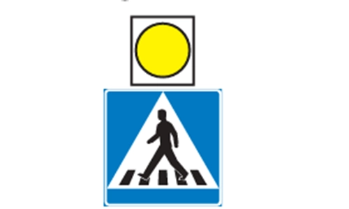 This sign indicates a designated pedestrian crossing zone. Drivers must reduce speed and yield to pedestrians using the crosswalk.